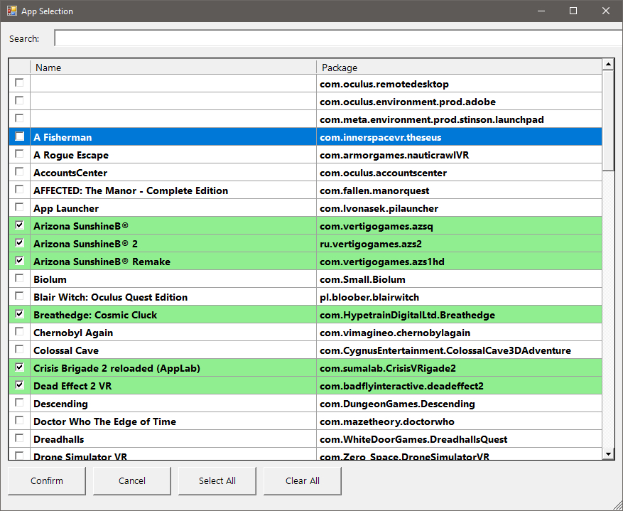 - Added an option to search for applications by name or package name in the application selection GUI. This also allows you to filter the applications you are looking for and mark only them