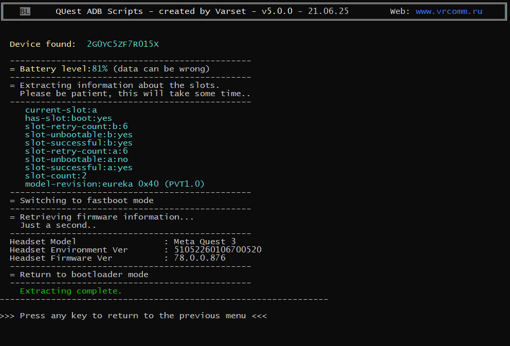 - In the option to check the relevance of the firmware (items G-E) the message has been reworked - if the firmware in the headset is newer than on cocaine.trade, it will say that it is up to date.