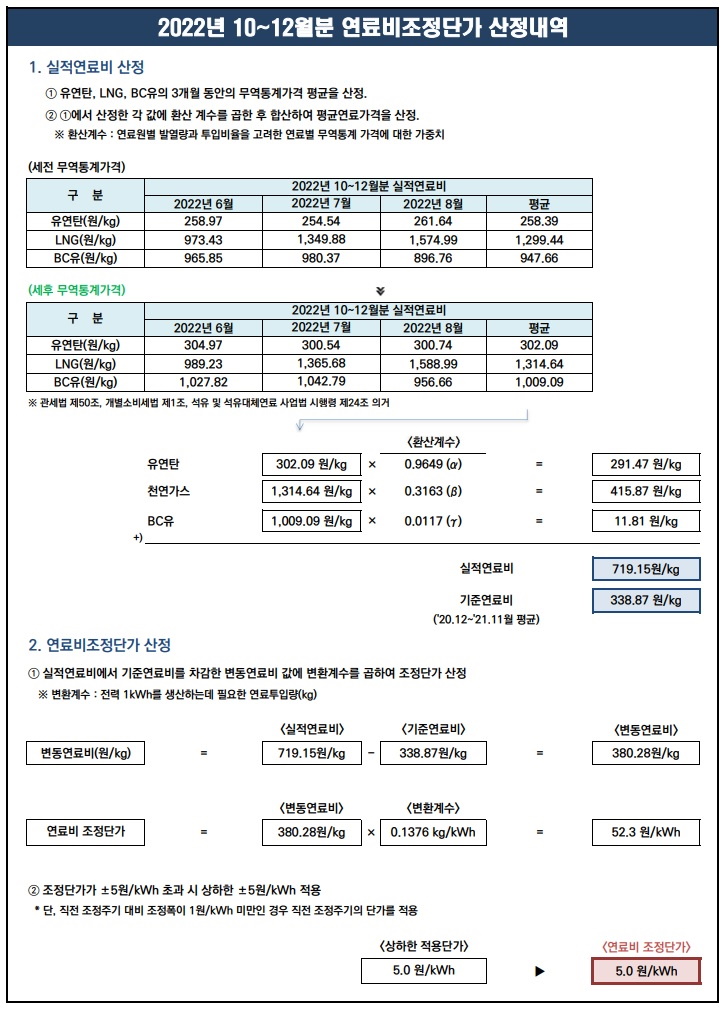 연료비조정단가 +5원