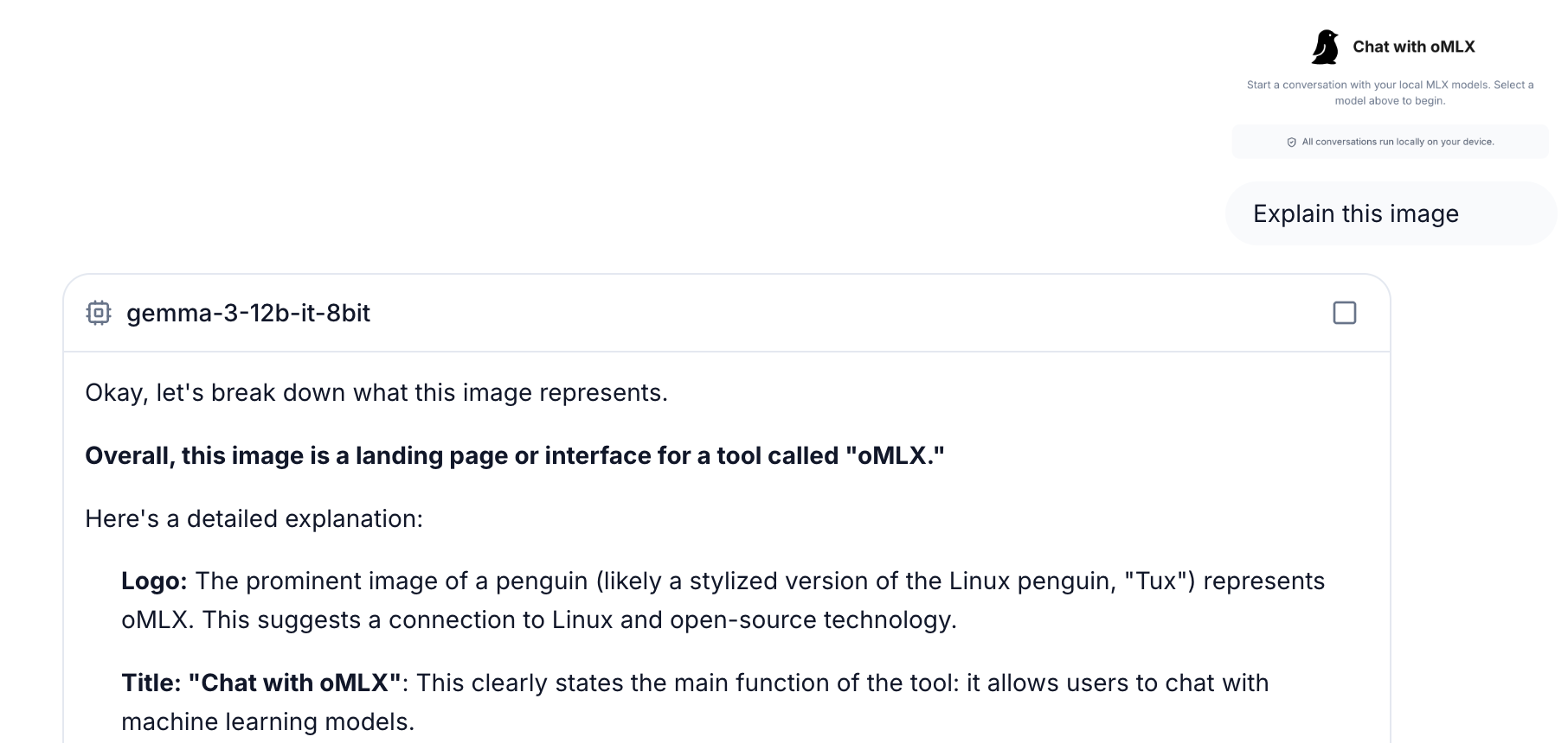 - Image upload support in Chat with oMLX. VLM models are auto-detected and you can attach multiple images per message. Thanks to @Leslie-SSS for the contribution! (#226)