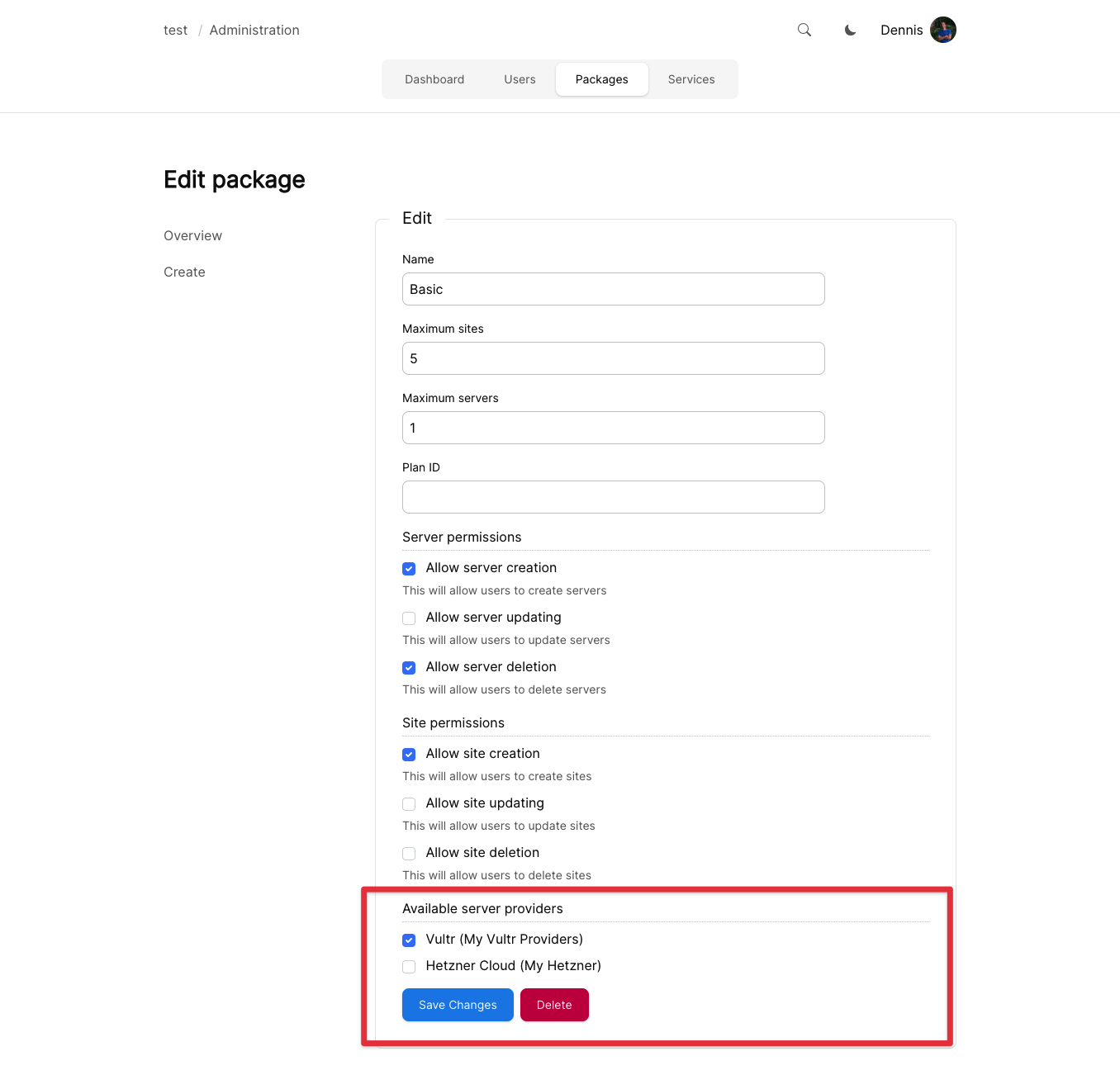 It has finally arrived, server management for your users. You are now able to let your users create servers. We are planning on more management for your customers on their own servers.