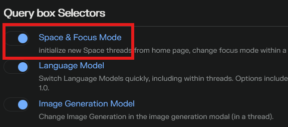 - Spaces that have files uploaded will have an extra focus mode option to include files in the context.