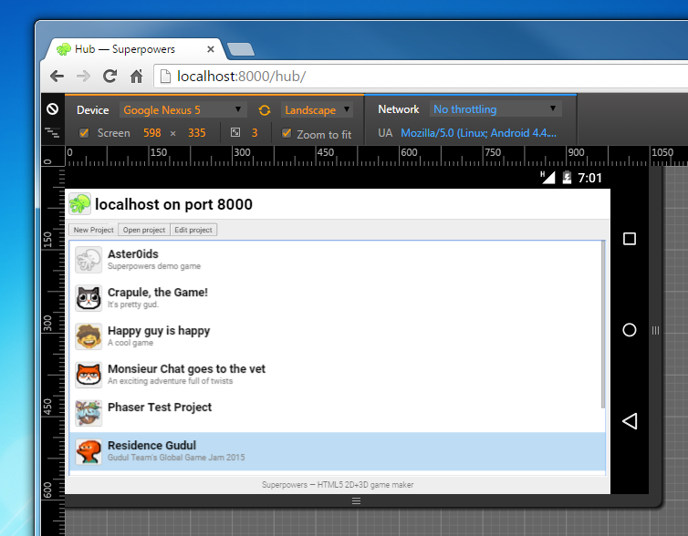 The new "Open project" button lets you open projects on smartphones and tablets! Ergonomy of the various editors isn't great for touch devices at the moment, but hey, at least it works!