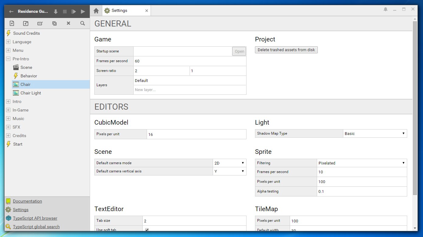 We don't hide each editor's settings in its own page anymore, and we've separated global game and project settings from the rest.