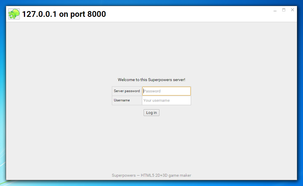The new server login page asks for the server's password and your chosen username at the same time. Much nicer than the terrible one-at-a-time prompts of yore! Still looks a bit bare, but we'll get there.
