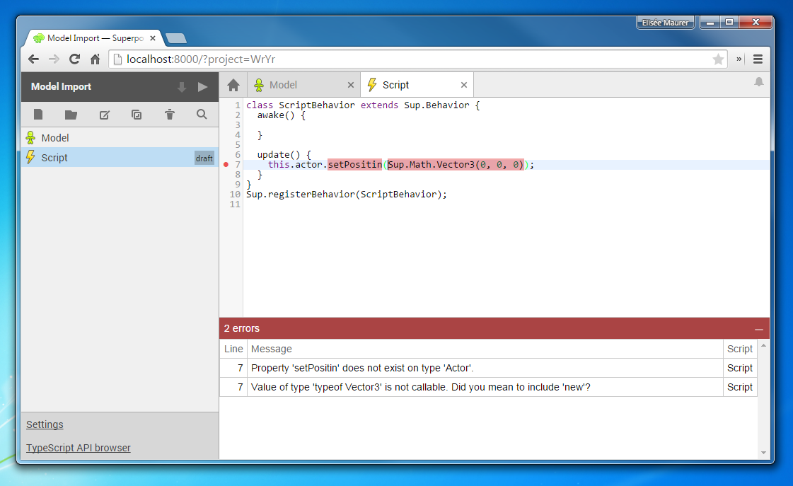 Error reporting in the script editor