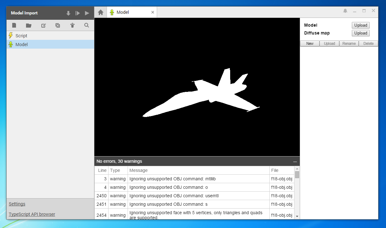 The model importers now report warnings and errors in a resizable pane.