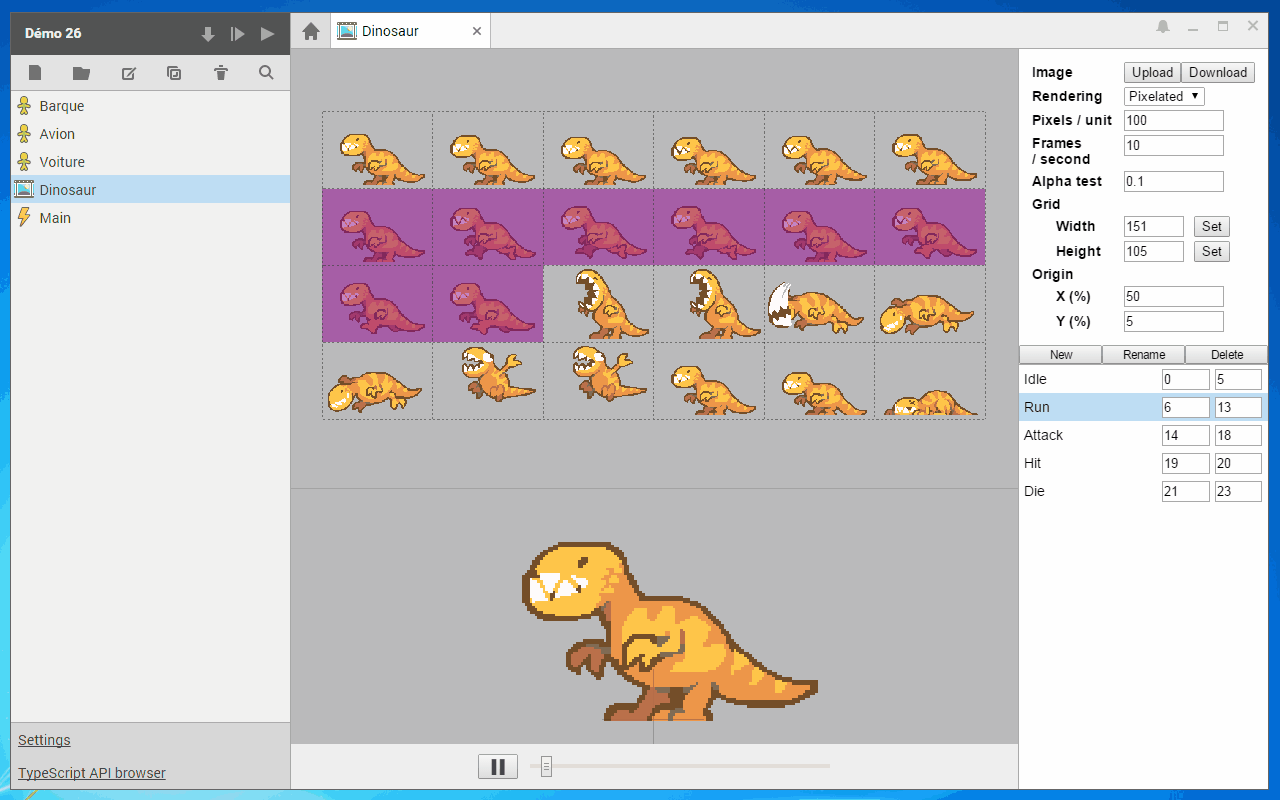 The spritesheet preview area can now be scrolled, it features a grid and provides better feedback for selecting an animation's start and end frames. The animation preview area is now resizable, too.