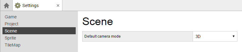 And you can choose the default camera mode (3D or 2D) for the scene editor.