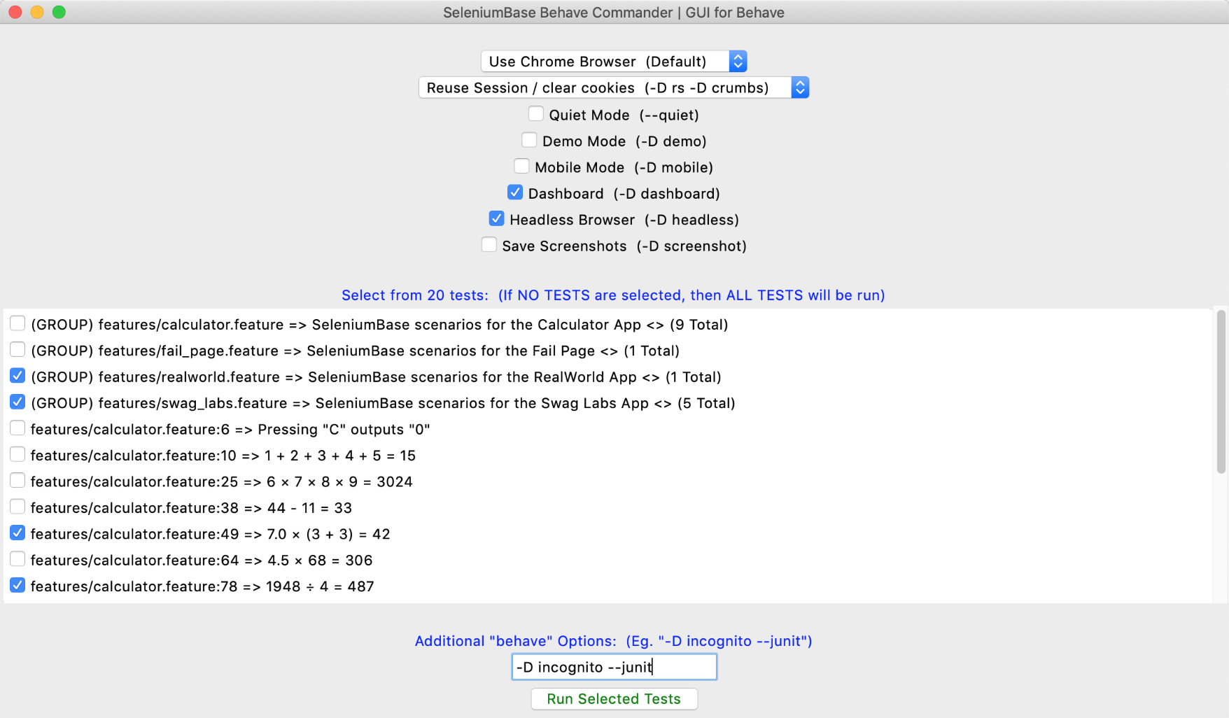 sbase behave-gui -i=calculator # tests with "calculator" in the name